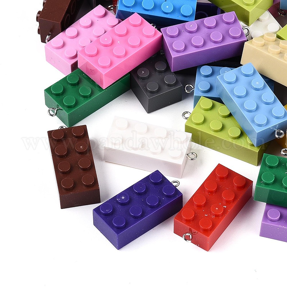 Кулоны из непрозрачного пластика, прямоугольные строительные блоки-подвески, с железной платиной петлей
