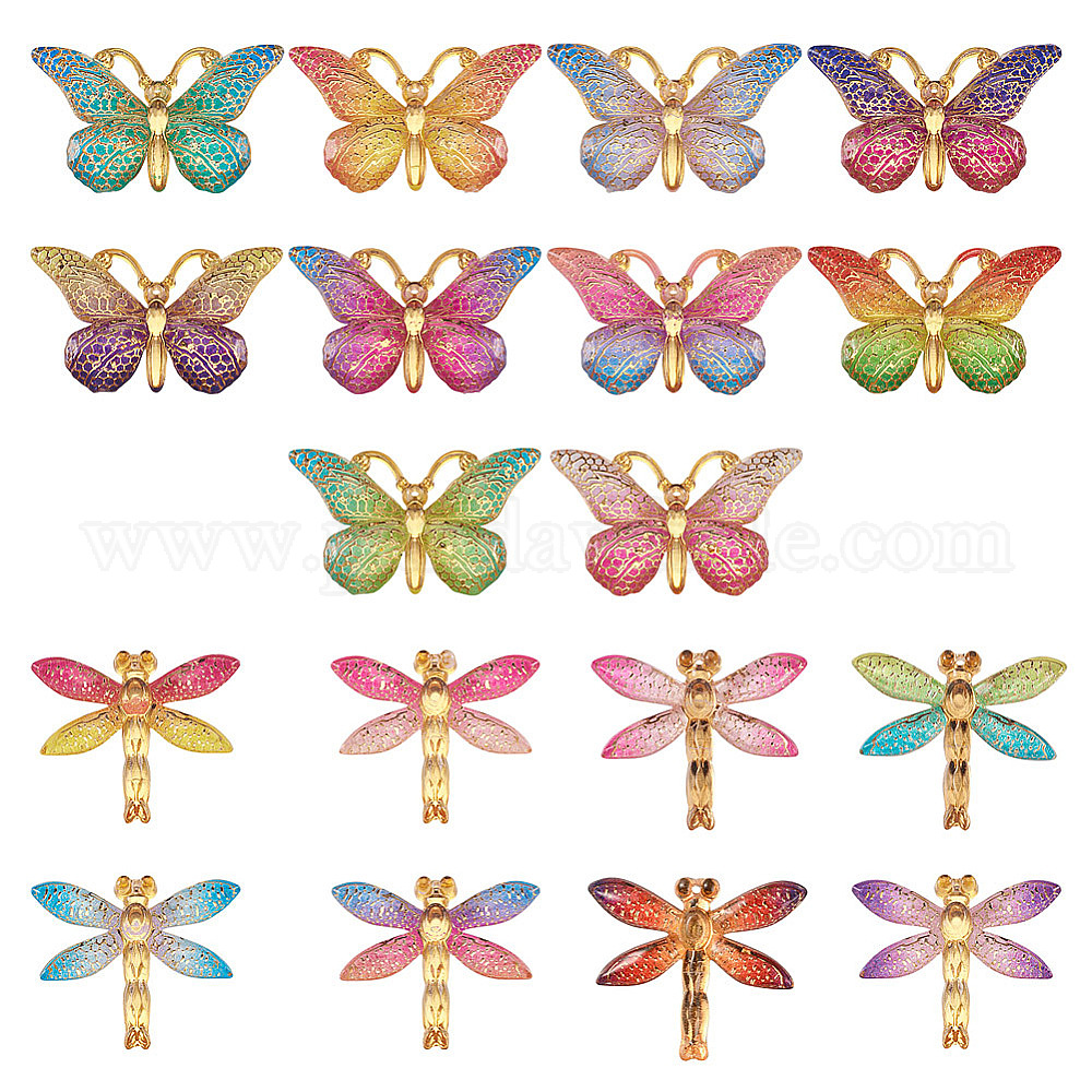 стрекоза: шириной около 31.5 мм, 26.5 мм длиной, толщиной 4.5 мм , отверстие : 1.2 мм., 8 цветов, 2 шт / цвет, 16 шт / комплект.