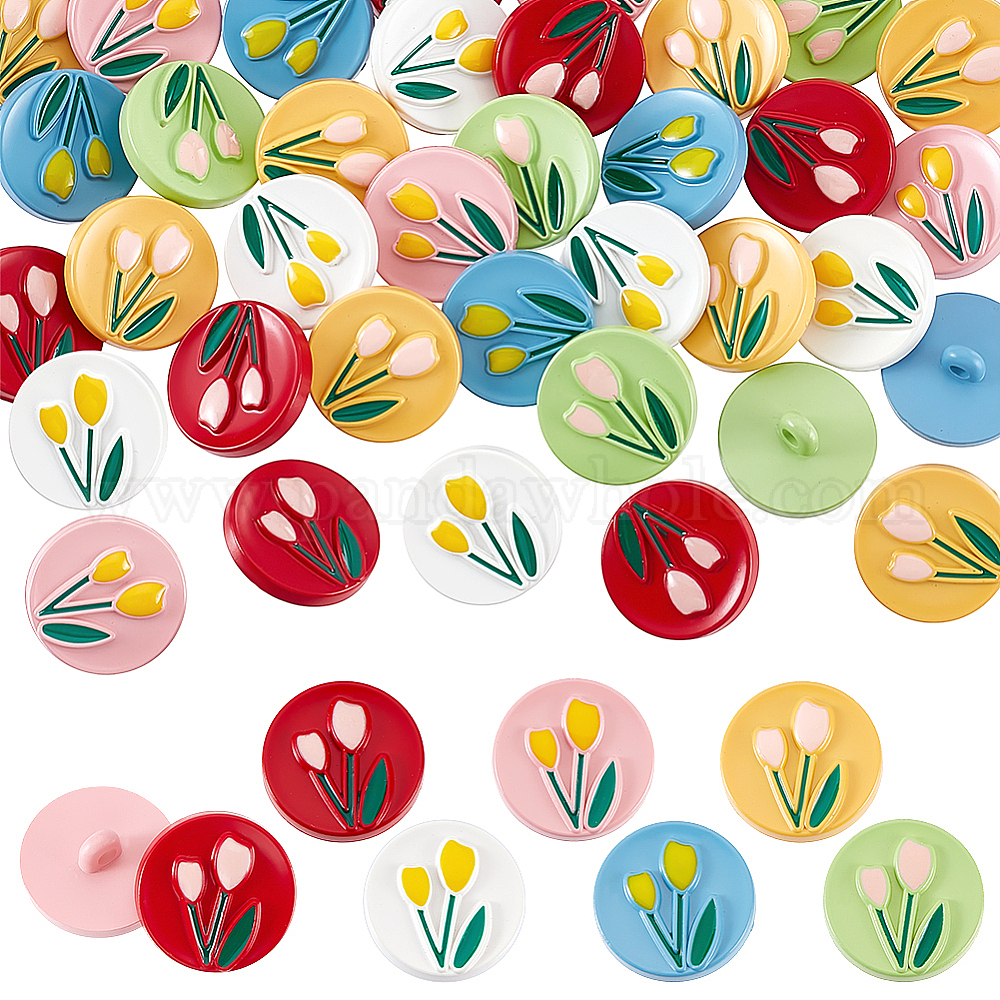 60 шт. 6 цвета 1-кнопки из АБС-пластика, окрашенные распылением, плоские круглые с цветком