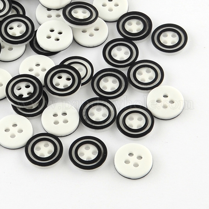 Пластиковые кнопки 4-отверстие, плоско-круглые, 11x2 мм, отверстие : 1.5 мм