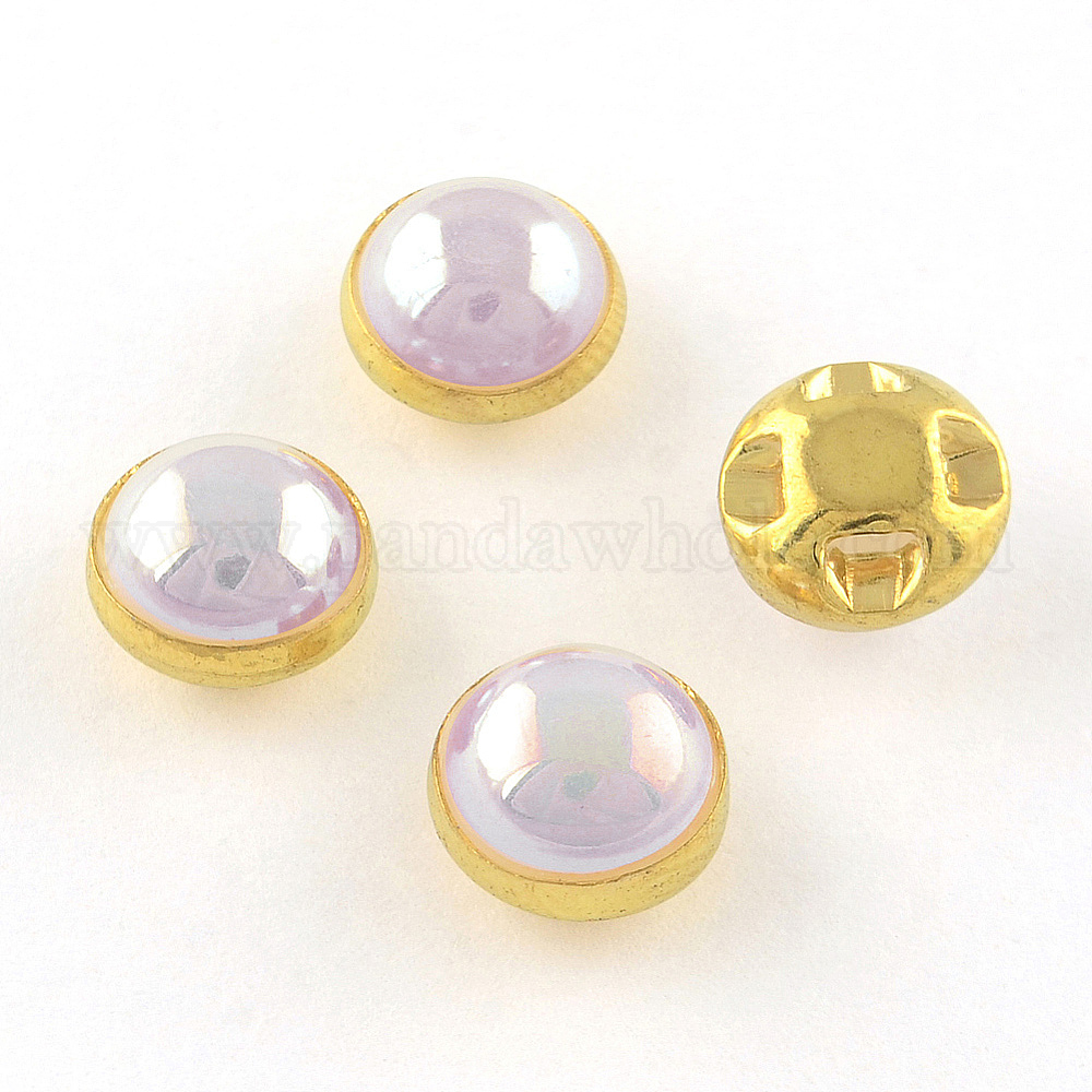 Абс пластиковые имитации перламутровые швейные пуговицы, AB цвет, с латунной фурнитурой , лаванда