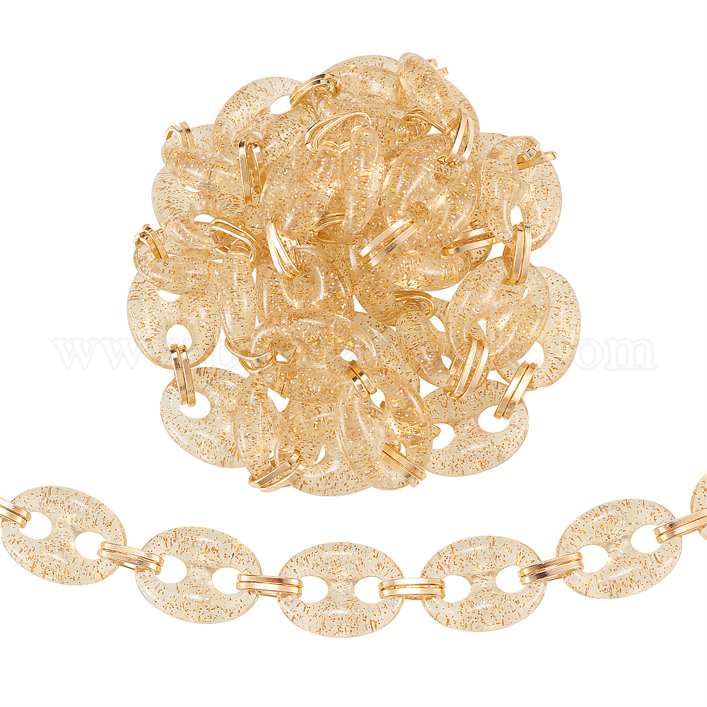 Прозрачные цепочки из акрила в зернах ручной работы, с блестящей пудрой и алюминиевыми скрепками, для изготовления цепочек для сумочек