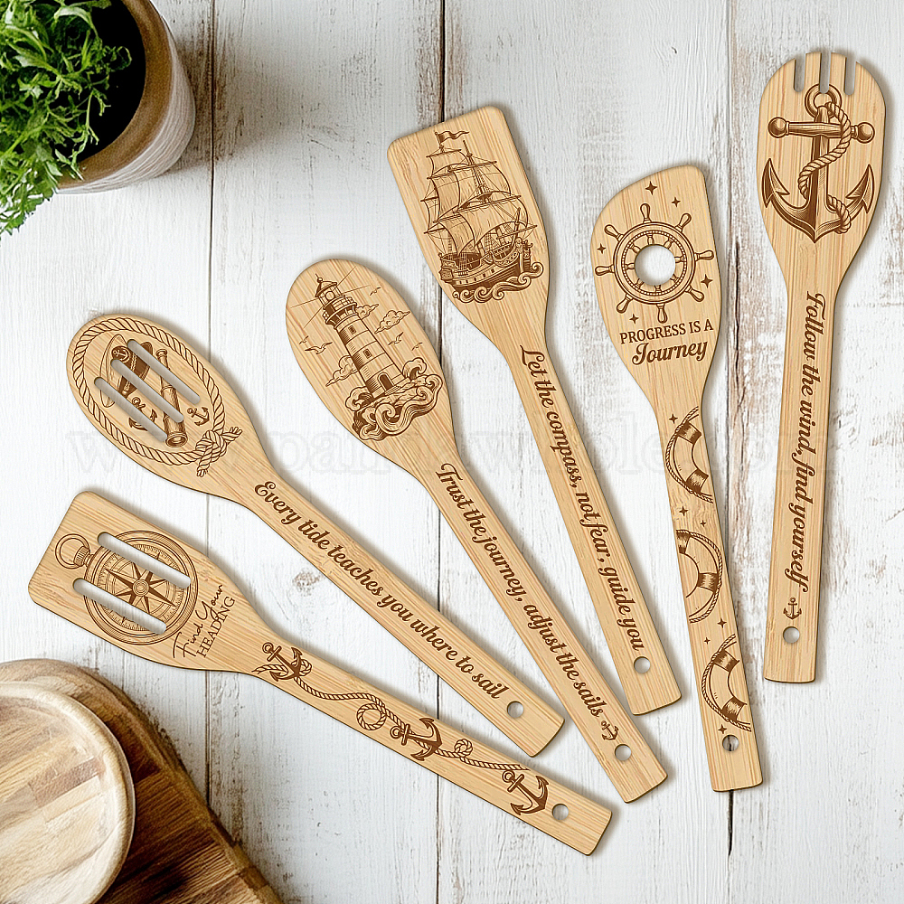 • Другие 6 бамбуковые ложки, ножи и вилки, столовые приборы на десерт, цветочный, 60x300 мм, 6 стиль, 1 шт / стиль, 6 шт / комплект
