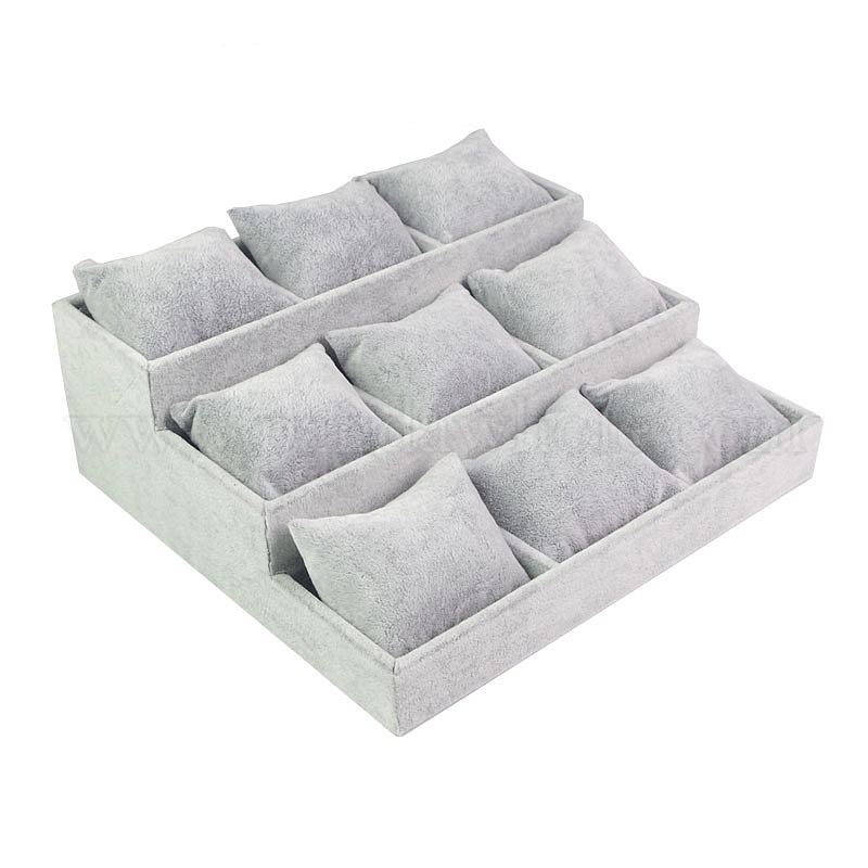 • Серый 3-подставка для органайзера из бархатного браслета с подушкой 9, Поднос для ювелирных изделий для показа часов-браслета, серые, 24x26x9.3 см
