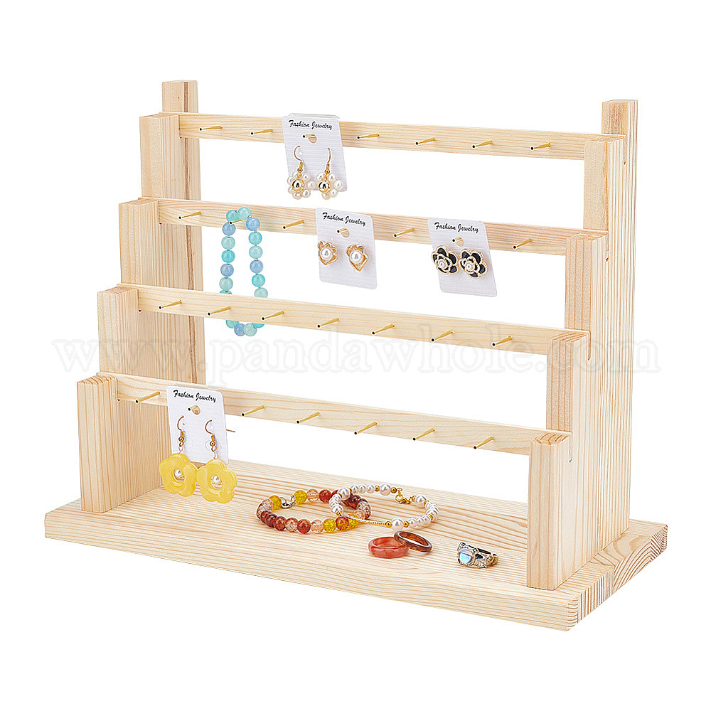 4-ярусные 28-деревянные подставки для серег в сборе с отверстиями, держатель-органайзер для серег с латунными крючками золотистого цвета (шт.)