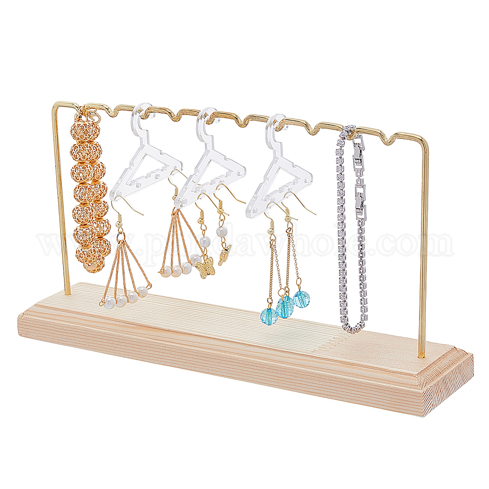 1 набор золотых тонов железный прут подвесные серьги деревянные подставки, с пластиковыми вешалками для серег (шт.)