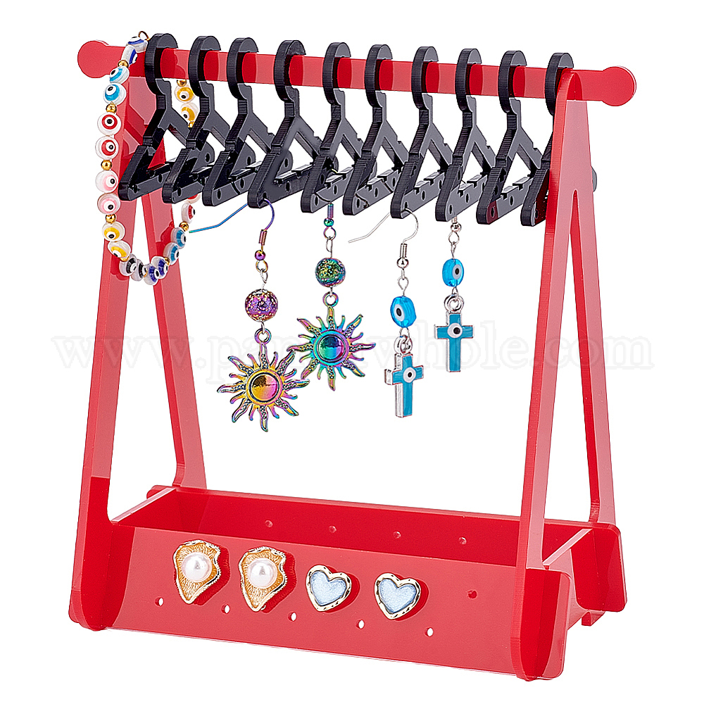 Акриловый дисплей серьги стойки, держатель-органайзер для сережек в форме вешалки с черными вешалками 10 шт.