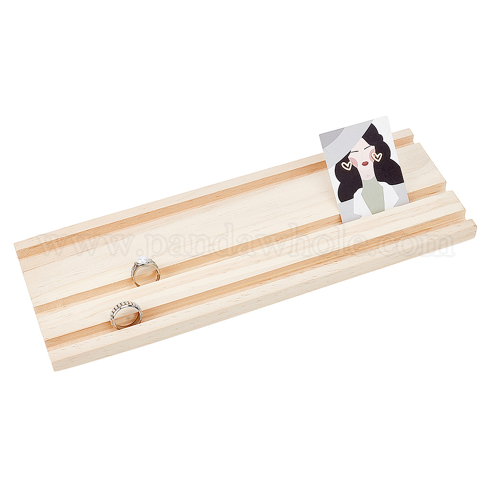 • пшеница 3-слотовый деревянный лоток для карточек для сережек, подставка для ювелирных изделий для сережек, хранение колец, прямоугольные, цвет пшеницы, 35x12.3x1.55 см, прорезь: 1.05 см