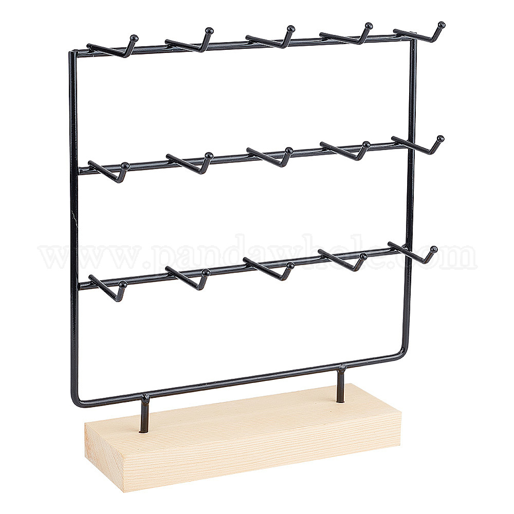 3-уровневые 15-крючковые железные подставки для сережек, органайзер для украшений для хранения серег, с деревянным подвалом, прямоугольные