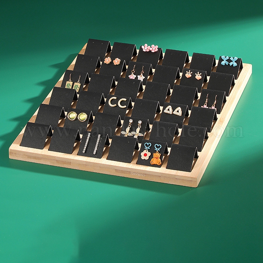 • Черный 36-слотовый лоток для бамбуковых сережек, с держателем дисплея из искусственной кожи, прямоугольные, чёрные, 350x285x35 мм