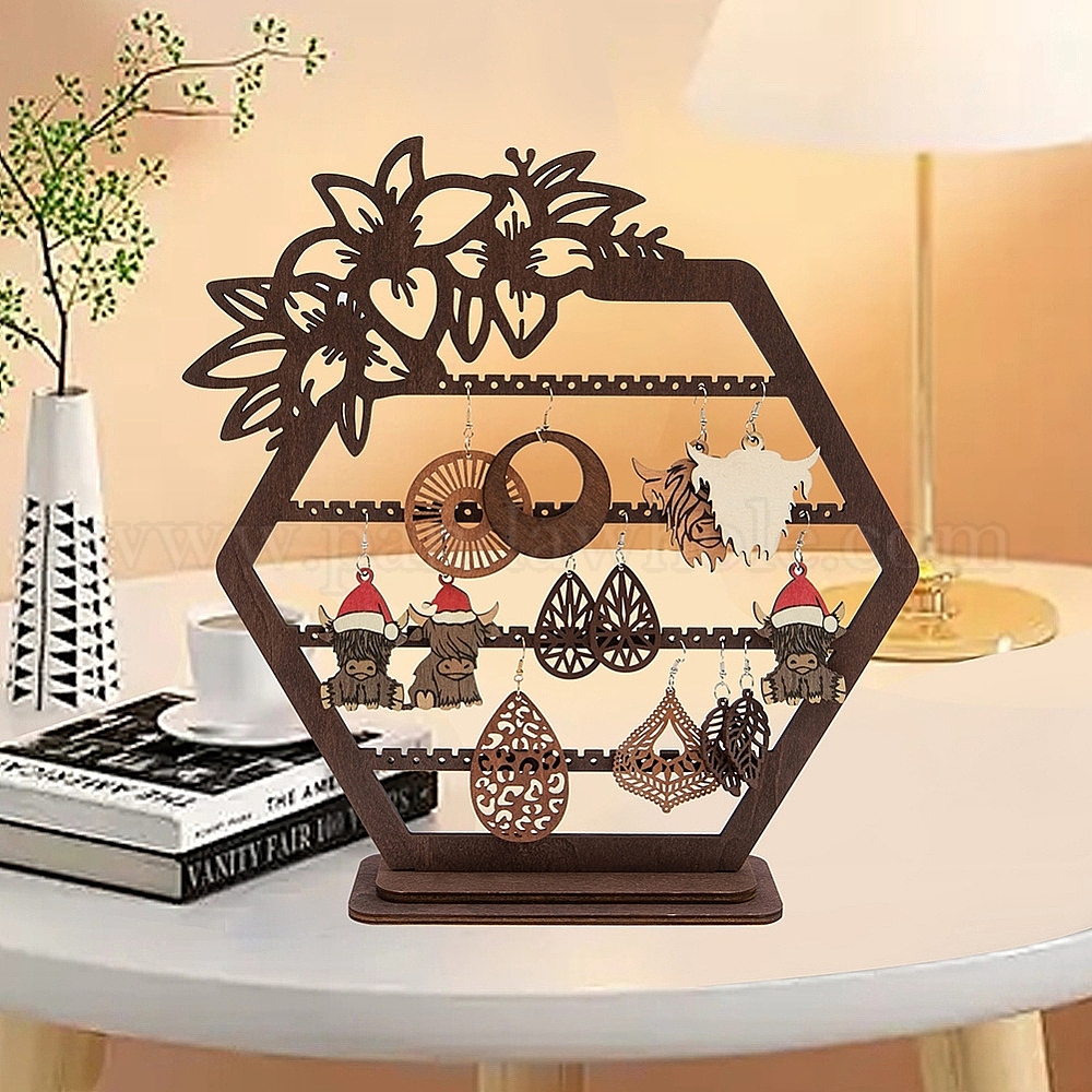 • Кокосово-Коричневый Дерева серьги, выставочная витрина, шестиугольник, кокосового коричневый, 5x29.9 см