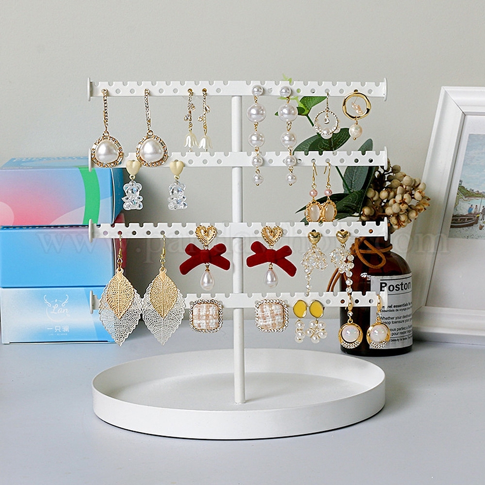 Четырехъярусная железная стойка для хранения сережек, подставки для хранения ювелирных изделий с круглым основанием