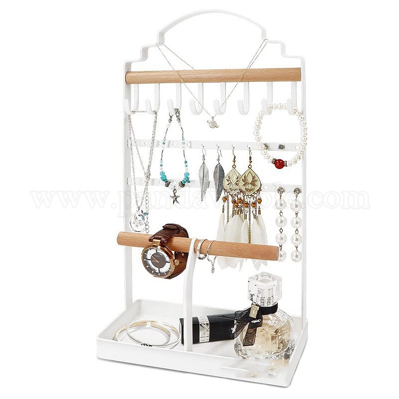Железная стойка для хранения украшений из дерева, серьги дисплей