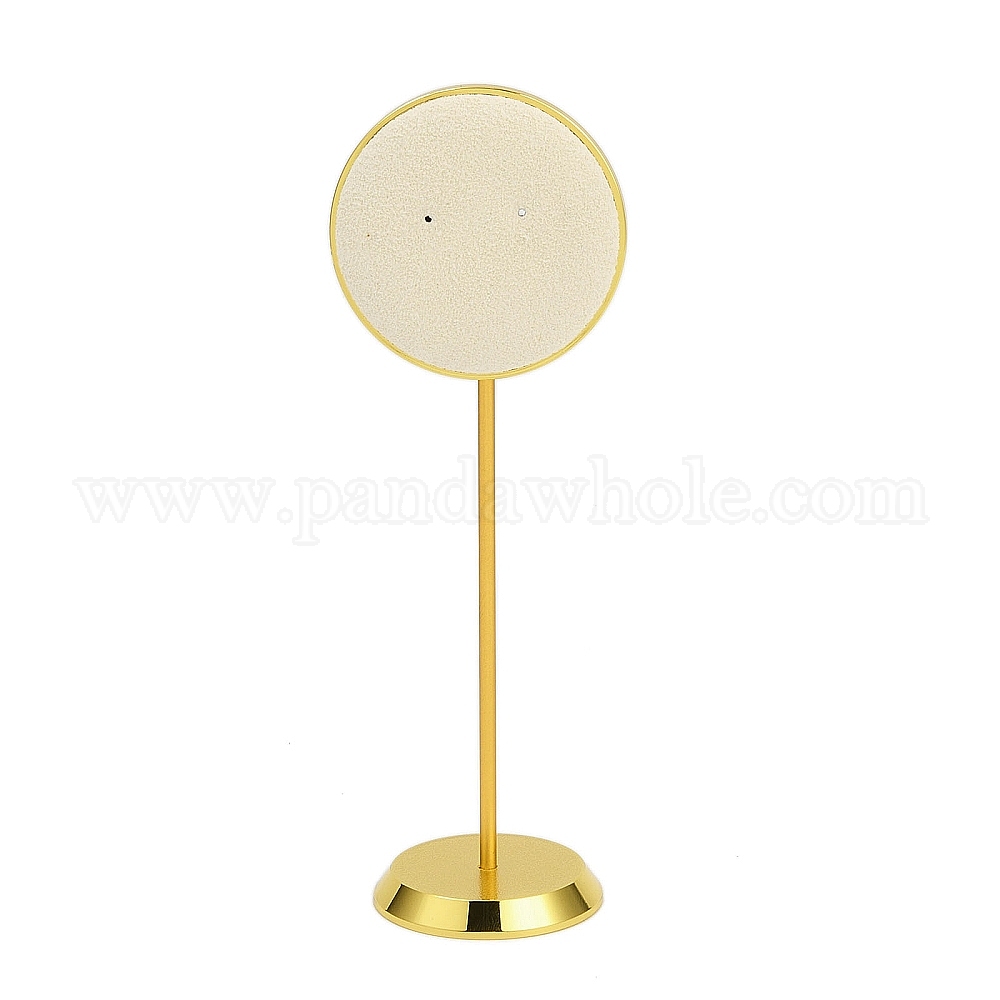• Золотой Круглые подставки для сережек из микрофибры, с основанием из алюминиевого сплава, бежевые, золотые, 5x4x14.5 см