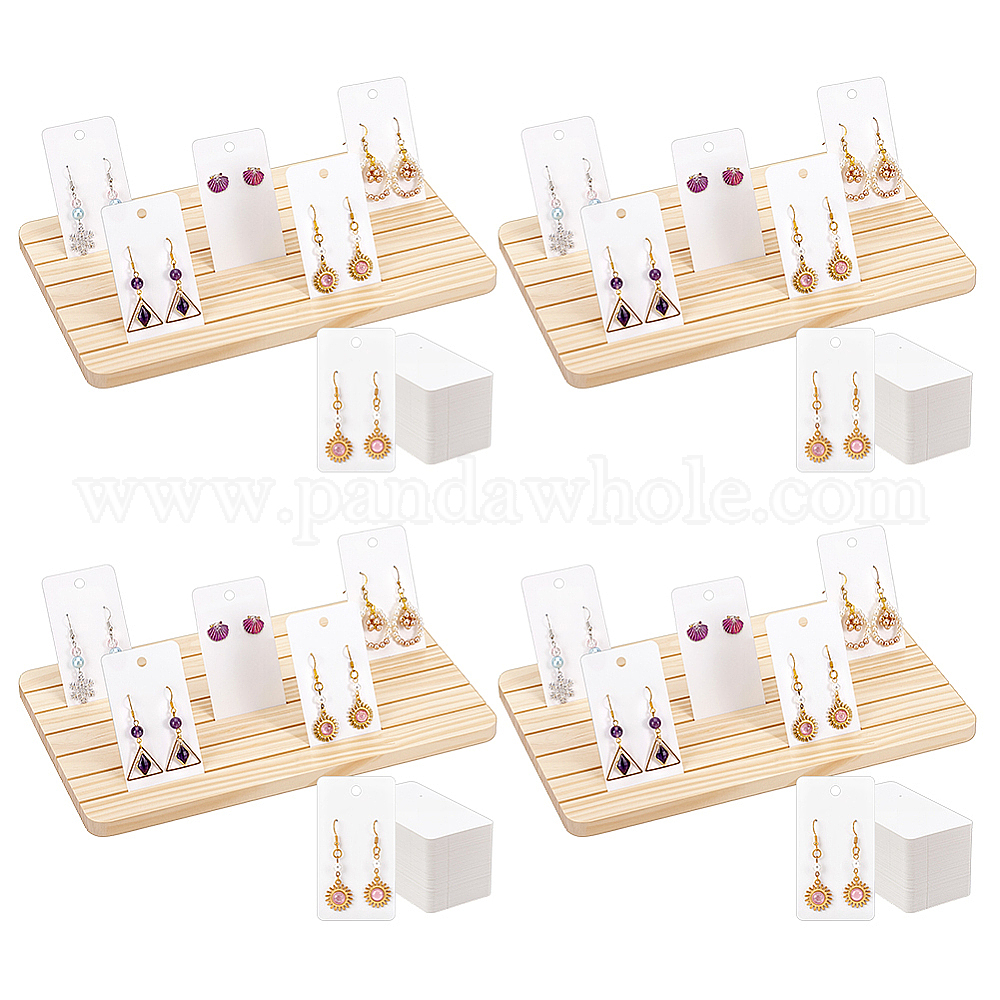 4шт. деревянные подставки для демонстрации ювелирных изделий, сережек и карточек с отделениями для хранения, прямоугольные, с 200шт. бумажных карточек для демонстрации отдельных сережек