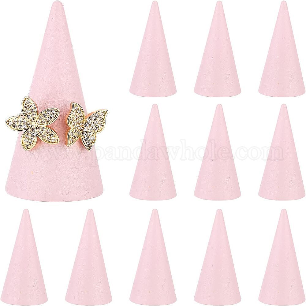 • Pink Держатель конусного кольца из цельного дерева, для отображения кольца, розовые, 2.5x5 см, 12 шт / комплект