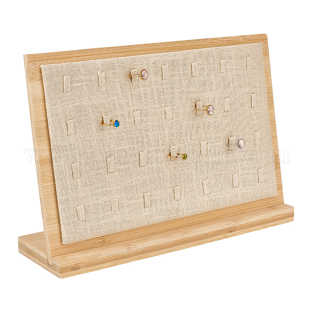 28-деревянные подставки-органайзеры для ювелирных колец с наклонной задней стенкой и льняным ковриком., прямоугольные