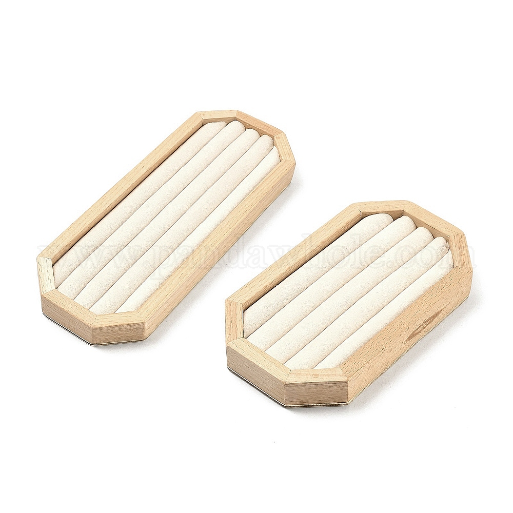 Деревянные подносы-органайзеры для колец с бархатной внутренней отделкой, прямоугольник восьмиугольник (03AYSF)