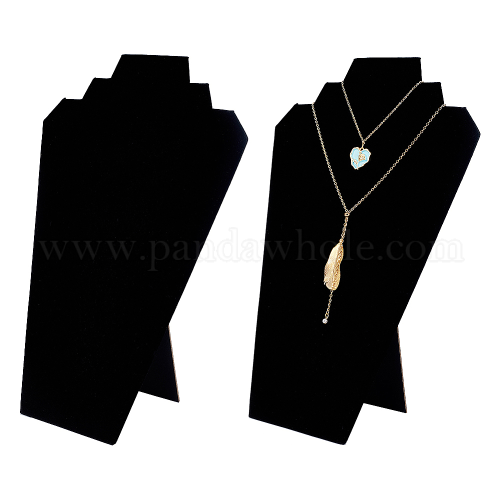 • Черный Бархатная обложка для бюста с картонными бумажными стендами для ожерелья, Держатель-органайзер для украшений с наклонной спинкой для хранения ожерелья, чёрные, готовое изделие: 21.2x9.5x31 см