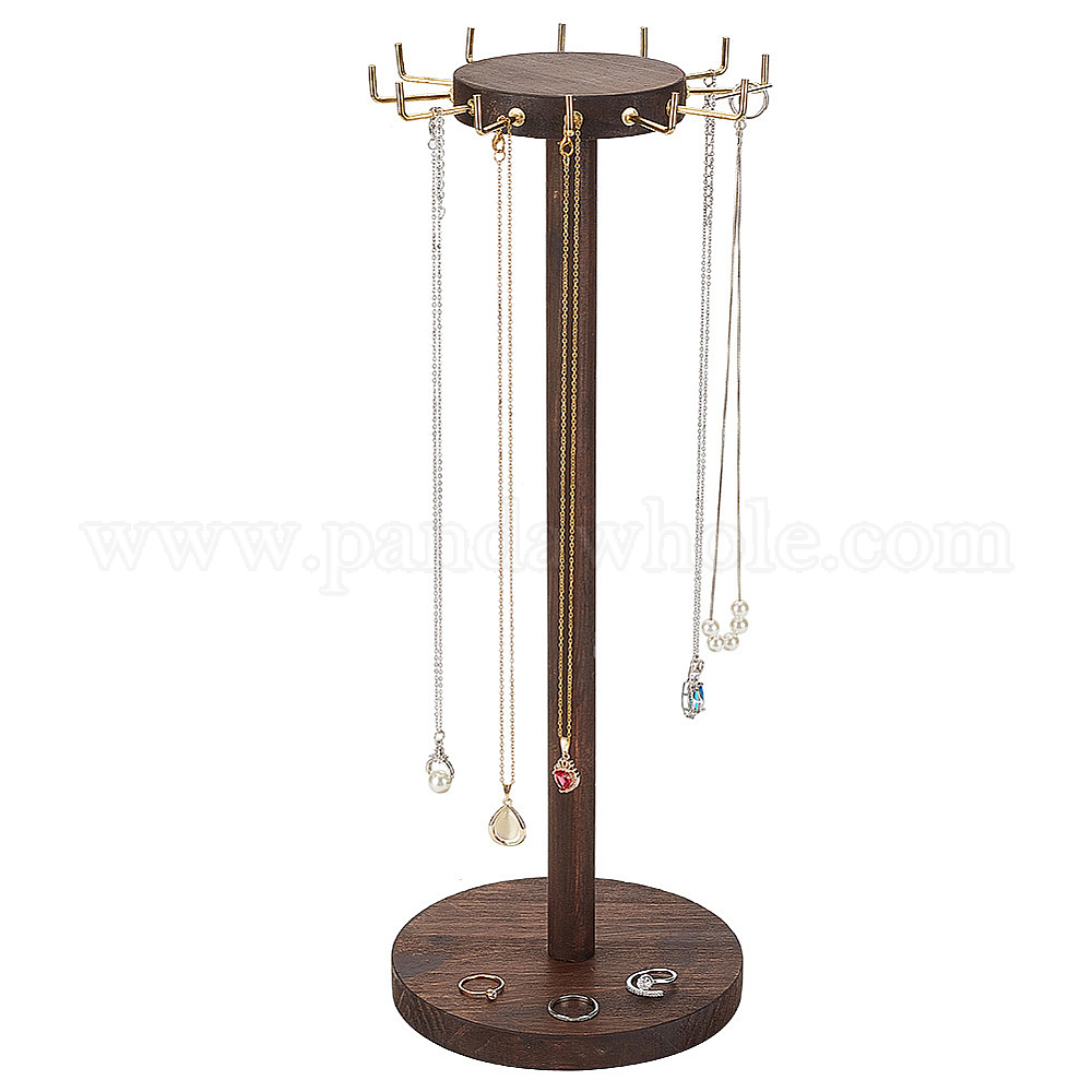 Круглый деревянный органайзер для ювелирных изделий, подвесная стойка для ожерелий, с крючками из цинкового сплава золотистого тона, для ожерелья, хранение браслетов