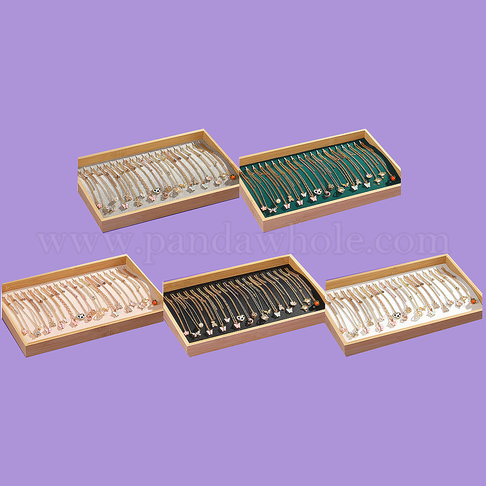 Бамбуковый поднос для органайзера для ожерелья, с бархатом/искусственной кожей, прямоугольные