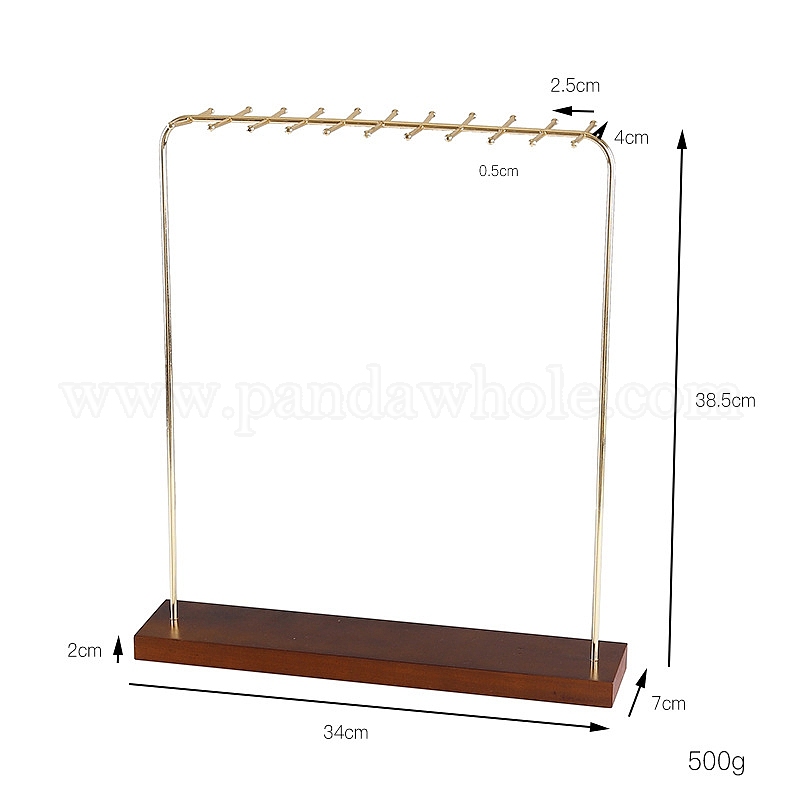 • Золотой Железа ожерелье дисплей стенды, с деревянным подвалом, прямоугольные, золотые, 34x7x38.5 см