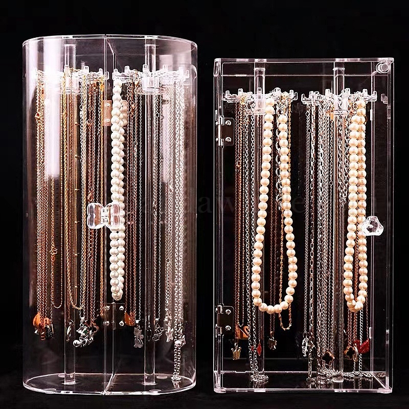 • Прозрачный Акриловые украшения подвесные ожерелья органайзер коробки для хранения, пыленепроницаемая вращающаяся витрина для ожерелий, прозрачные, 16x8x32 см