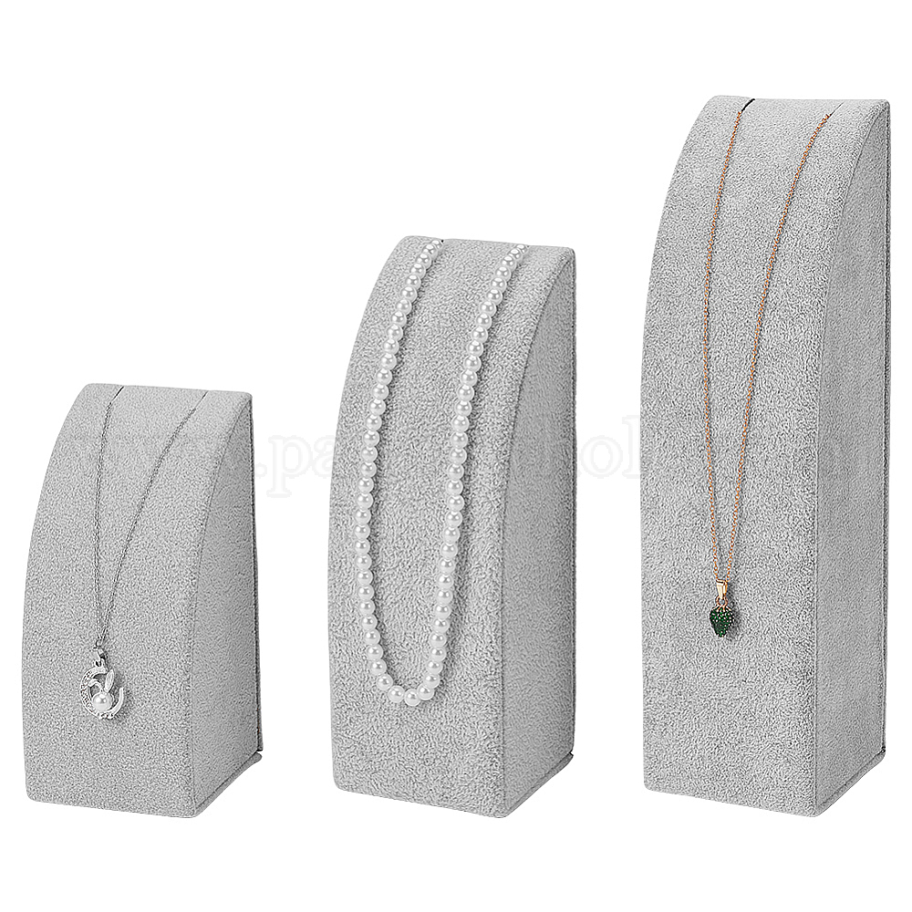 • Светло-серый 3 шт. 3 размеры вертикальные подставки для ожерелий из МДФ и дерева, покрытые бархатом, полуарочная форма, светло-серый, 6.5x7.5~7.75x14.35~24.5 см, 1 шт / размер
