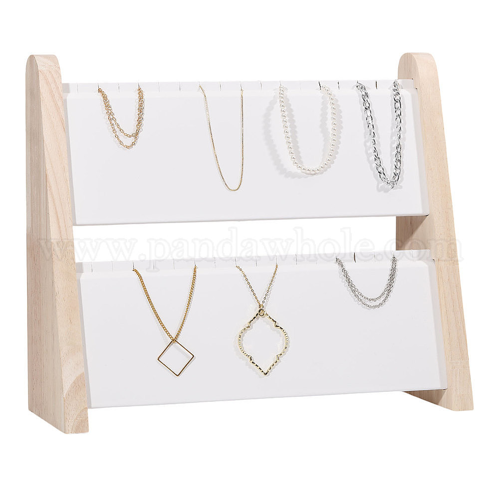 2 деревянные наклонные подставки для ожерелий, органайзер для ожерелий из искусственной кожи, прямоугольные