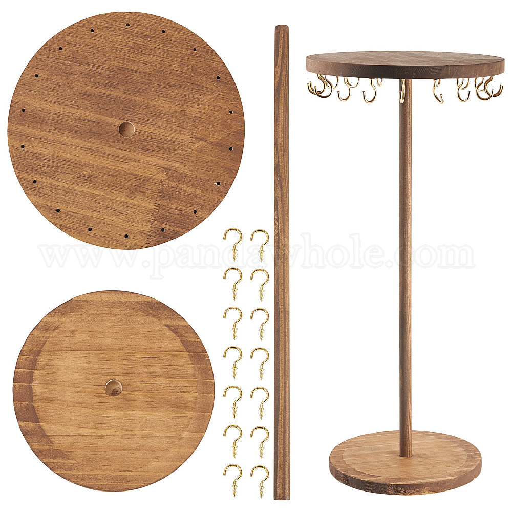 Вращающаяся круглая деревянная подвесная стойка-органайзер для ожерелий и ювелирных изделий, с 18шт. железных крючков, для ожерелья, хранение браслетов, золотые
