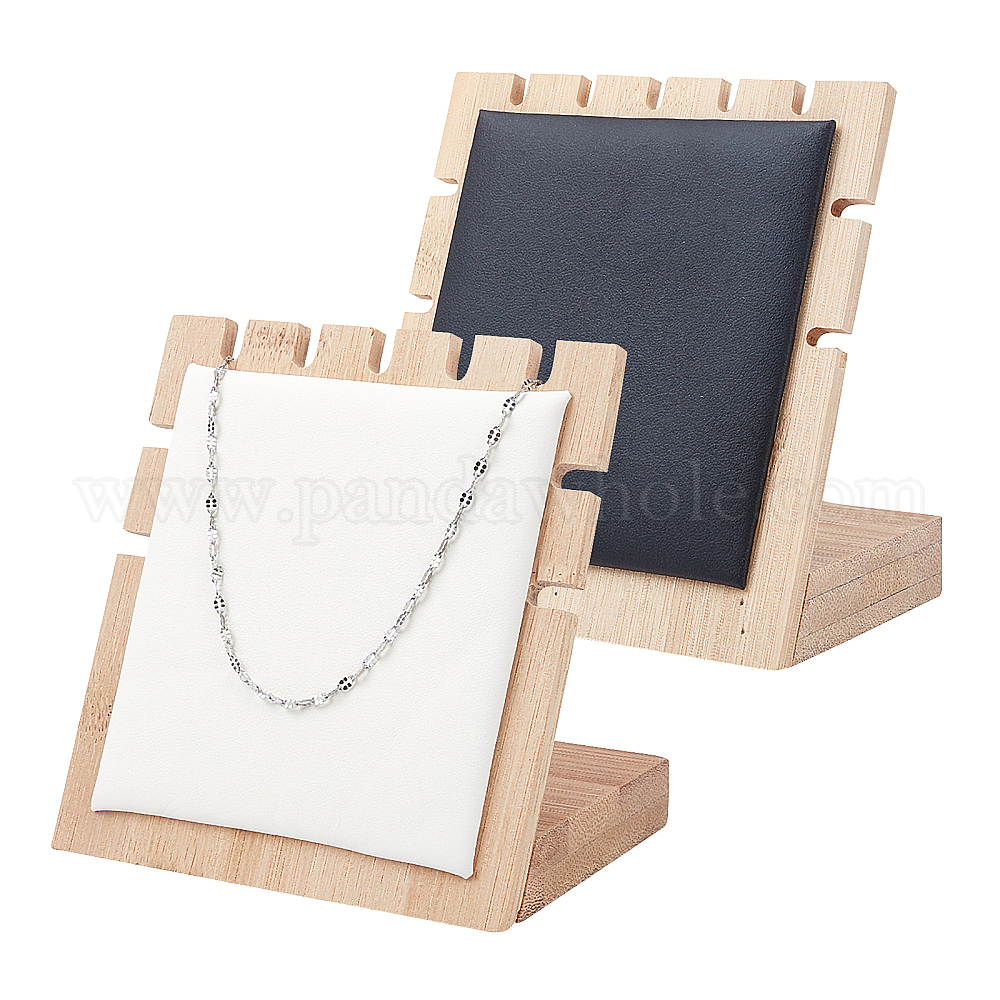 2шт 2цвета бамбуковая витрина для ювелирных изделий для ожерелья с подвеской, с кожаной подкладкой, квадратный