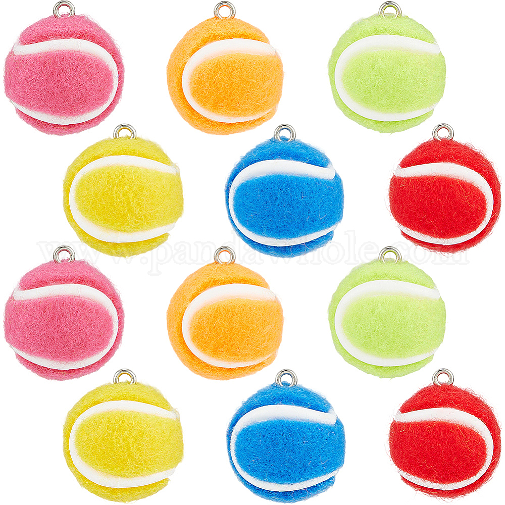 12 шт 6 цвета ткань подвески из ткани, с платиновым тоном железная петля, большой теннис