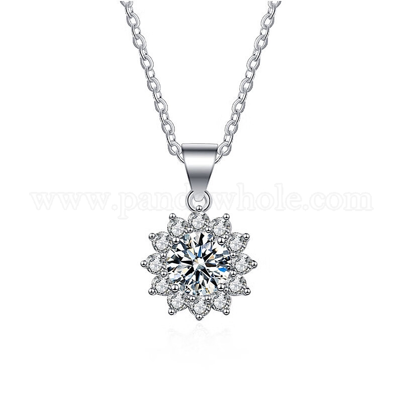 Подвески из стерлингового серебра с родиевым покрытием и прозрачными циркониями с микропаве, Цветочные подвески с кристаллами муассанита и горным хрусталем