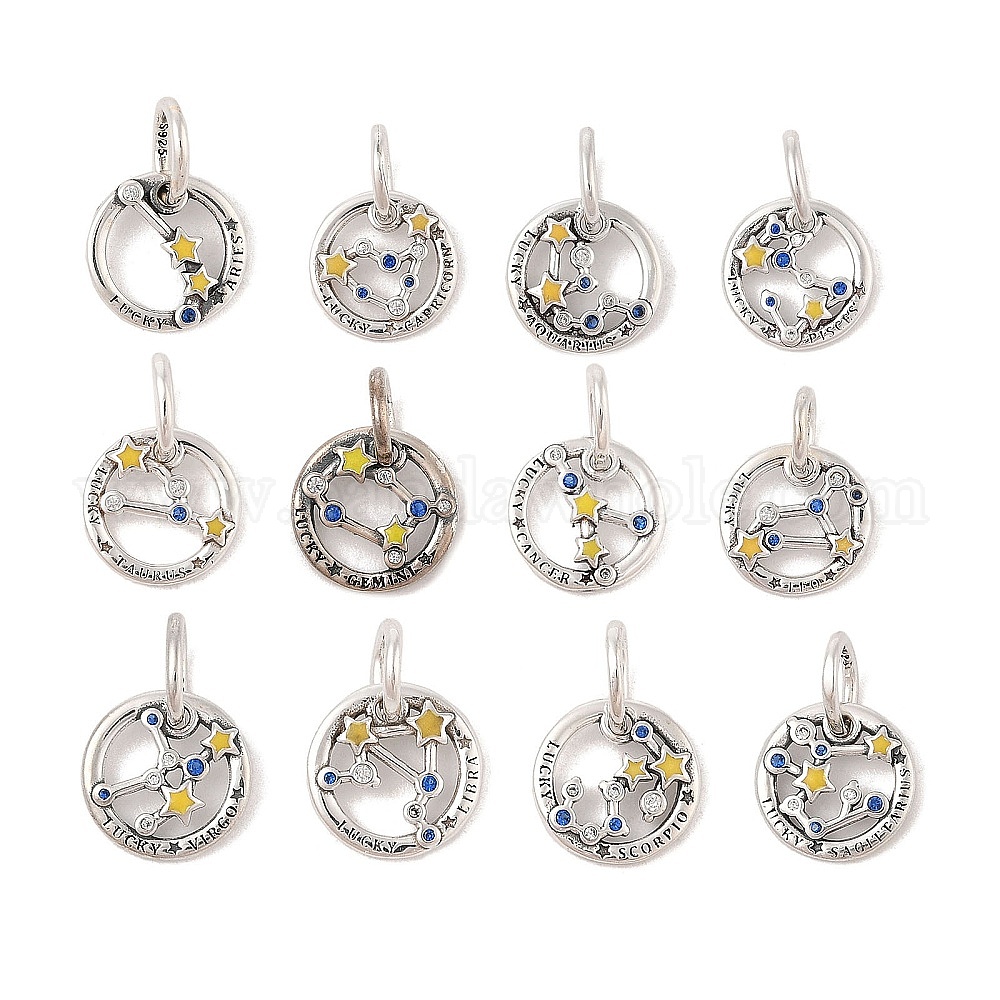 Светящиеся 925 подвески-созвездия из стерлингового серебра со стразами, эмалевые подвески-созвездия с овальными соединительными кольцами, светящиеся в темноте, античное серебро