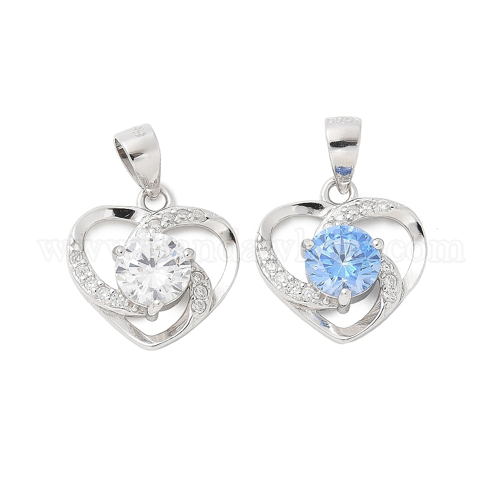 Подвески в форме сердца из тонкого серебра с кубическим цирконием, платина, родий