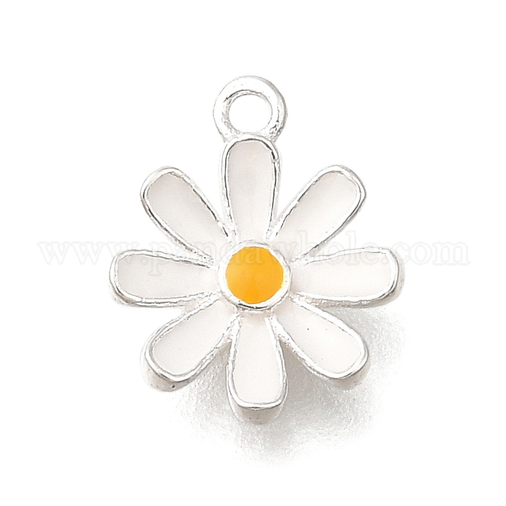 • Белый 925 серебряные шармы, с эмалью, прелести маргаритки, белые, 9.5x7.5x1.5 мм, отверстие : 1 мм