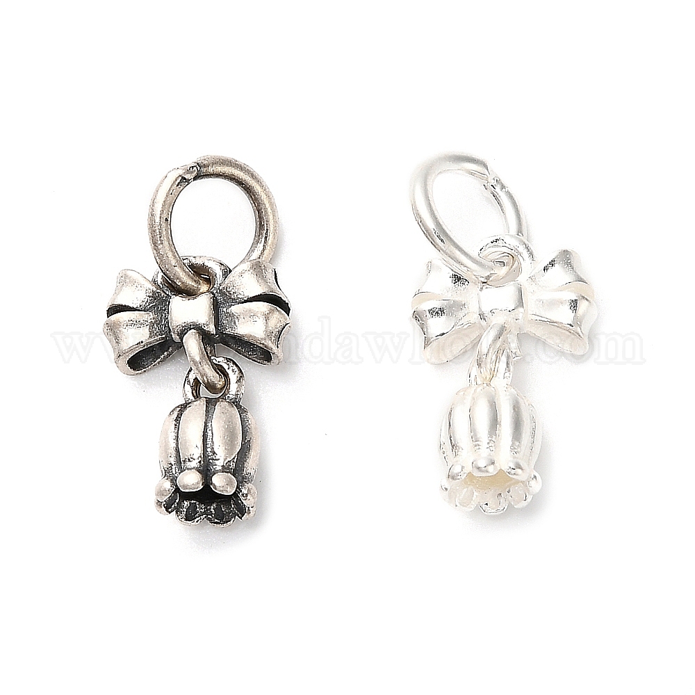 S 925 подвески из стерлингового серебра, с кольцами для прыжков, бант с подвесками в виде цветка тюльпана, с печатью 925