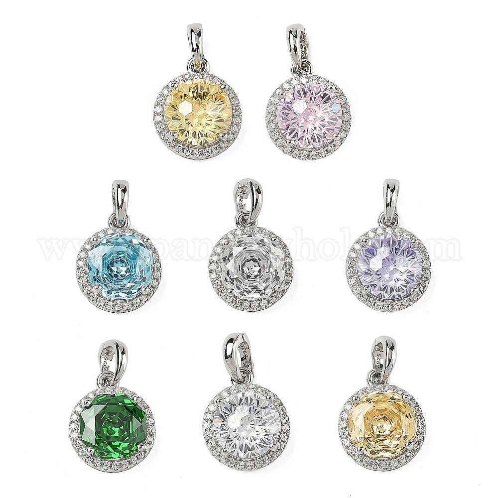 925 подвески из стерлингового серебра с паве из кубического циркония, плоские круглые прелести, платина, родий