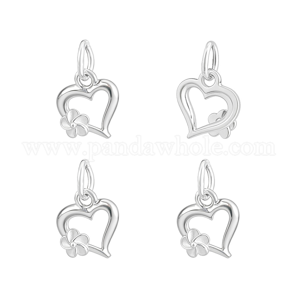 4шт. 925 Сердечко из стерлингового серебра с подвесками в виде цветов, с прыгающими кольцами и 925 штампом