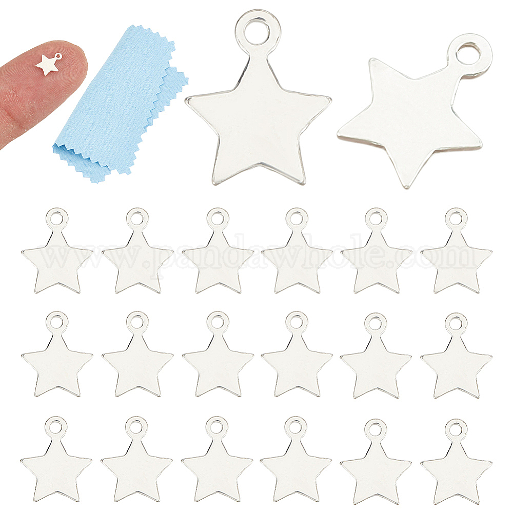 20шт. 925 подвески из стерлингового серебра, звезда, с замшевой тканью из поликарбоната квадратной серебряной полировальной салфеткой