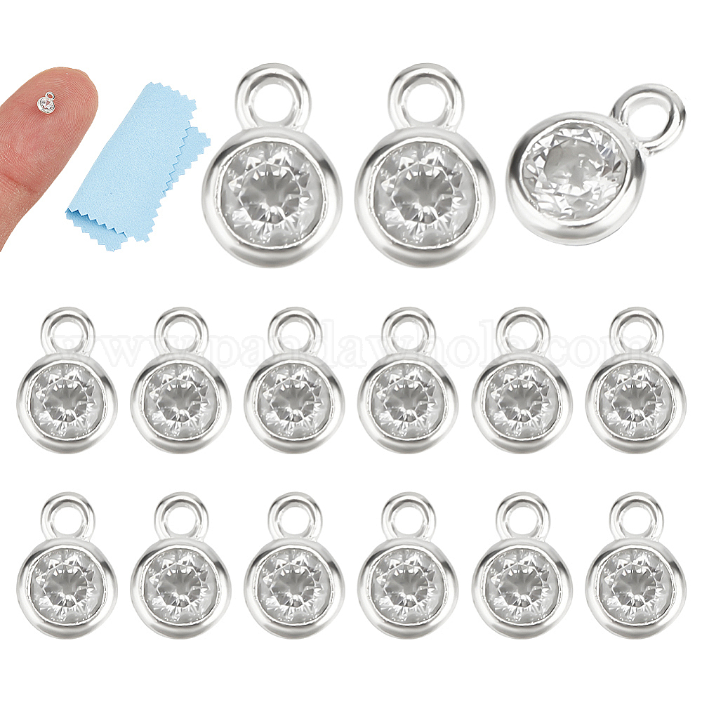 15 шт. 925 плоские круглые подвески из стерлингового серебра с прозрачными кубическими цирконами, с замшевой тканью из поликарбоната квадратной серебряной полировальной салфеткой