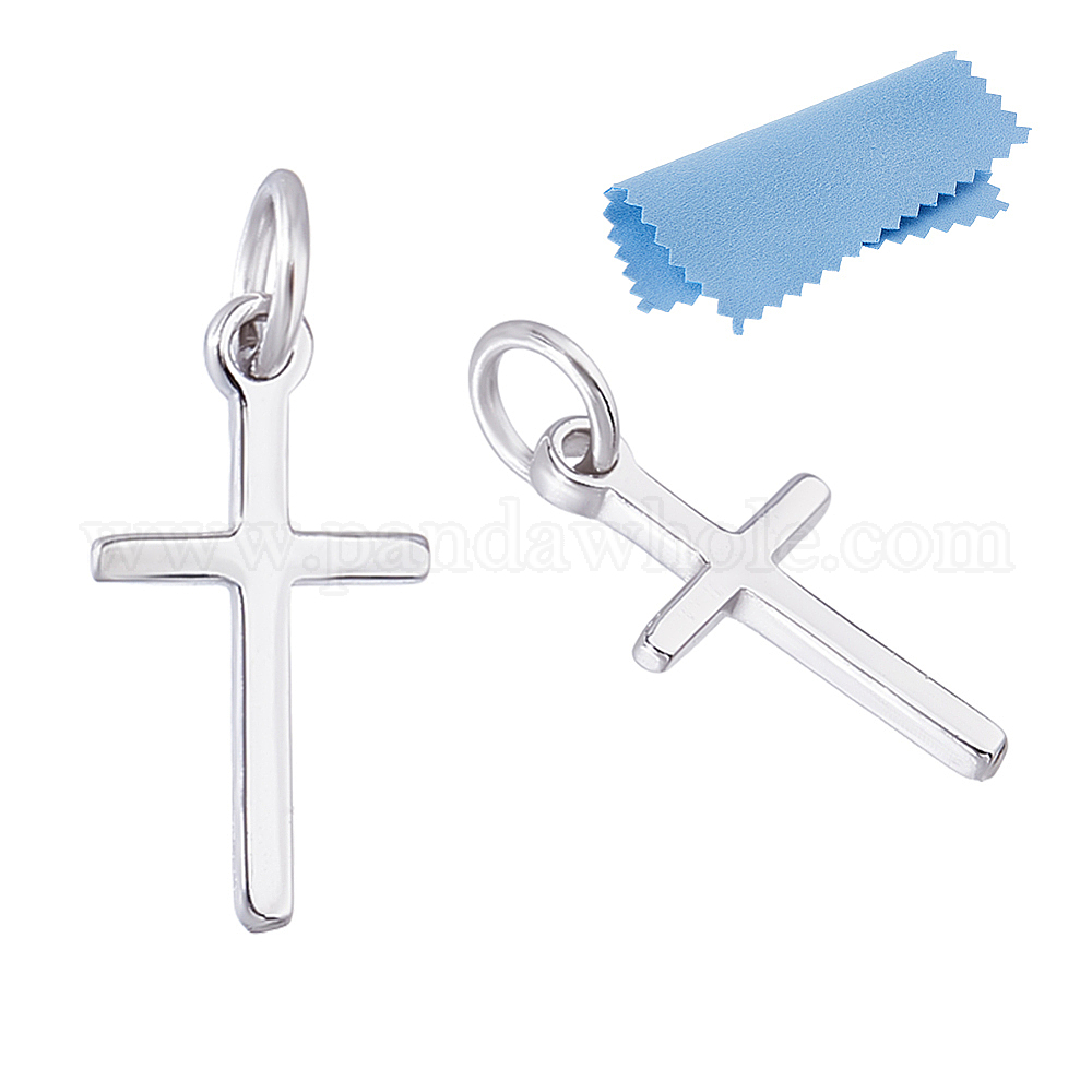 2шт 925 серебряные религиозные кресты-талисманы, с 925 штампами и кольцами для прыжков, родий, с замшевой тканью из поликарбоната квадратной серебряной полировальной салфеткой (037EKX)