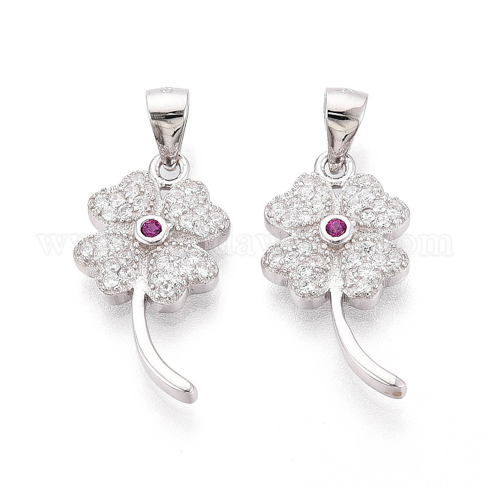 Счастливый 925 подвеска из стерлингового серебра с микропаве из прозрачных кубических цирконий, Подвески в виде четырехлистного клевера с клеймом 925, родий