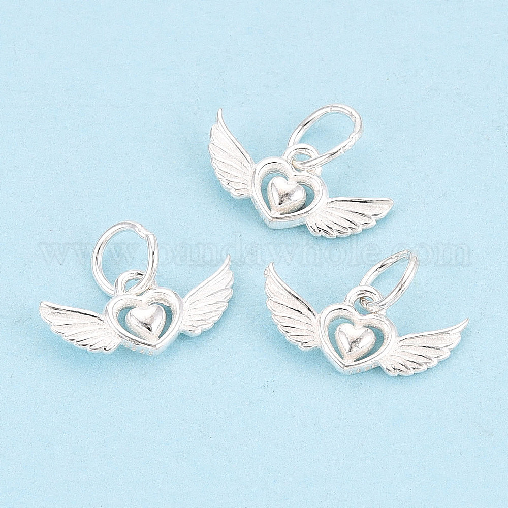 925 Подвеска в виде сердца из стерлингового серебра с ангельскими крыльями, с печатью 925