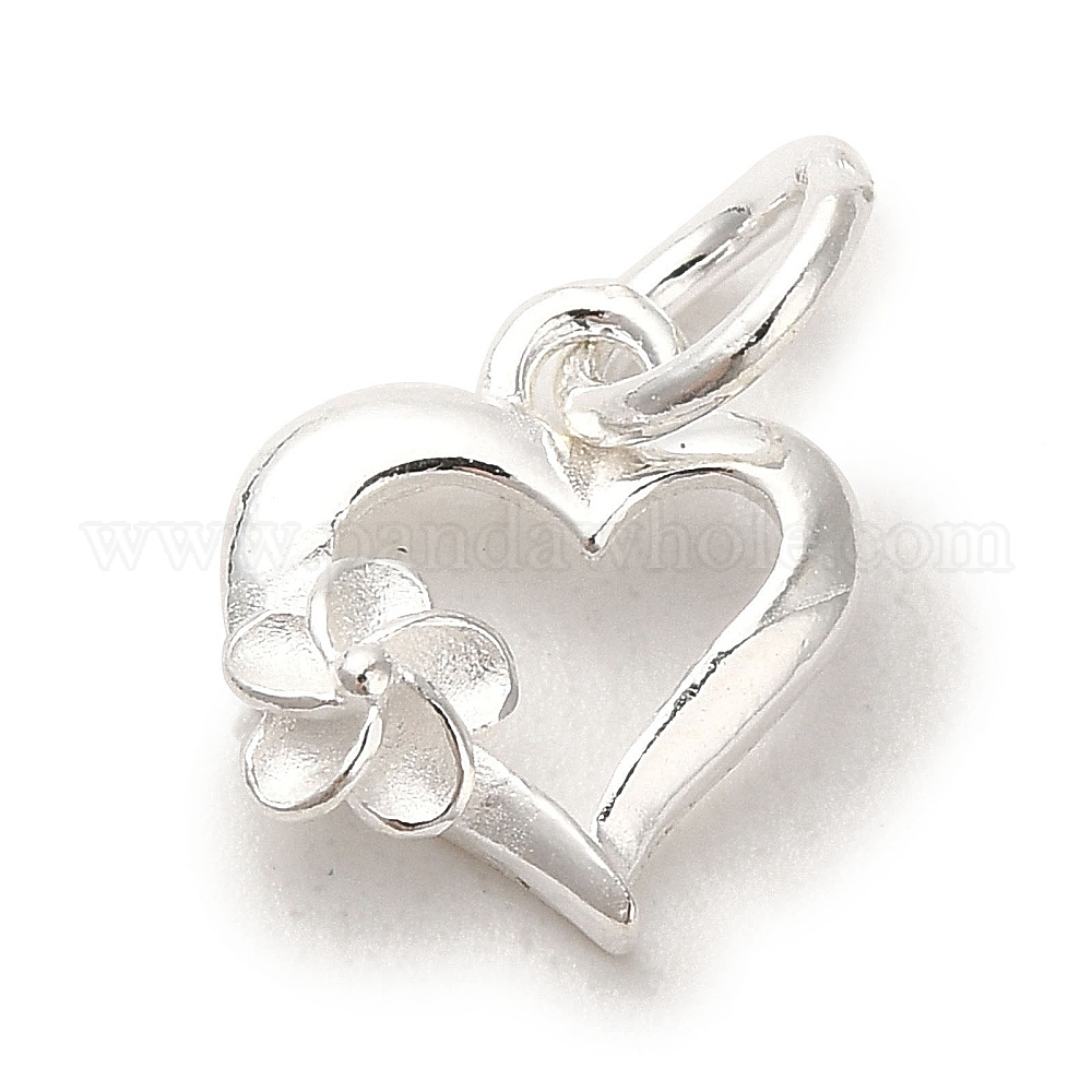 • Серебро 925 сердце из стерлингового серебра с цветочными подвесками, с прыгающими кольцами и 925 штампом, серебряные, 10x9x2.5 мм, отверстие : 3.5 мм