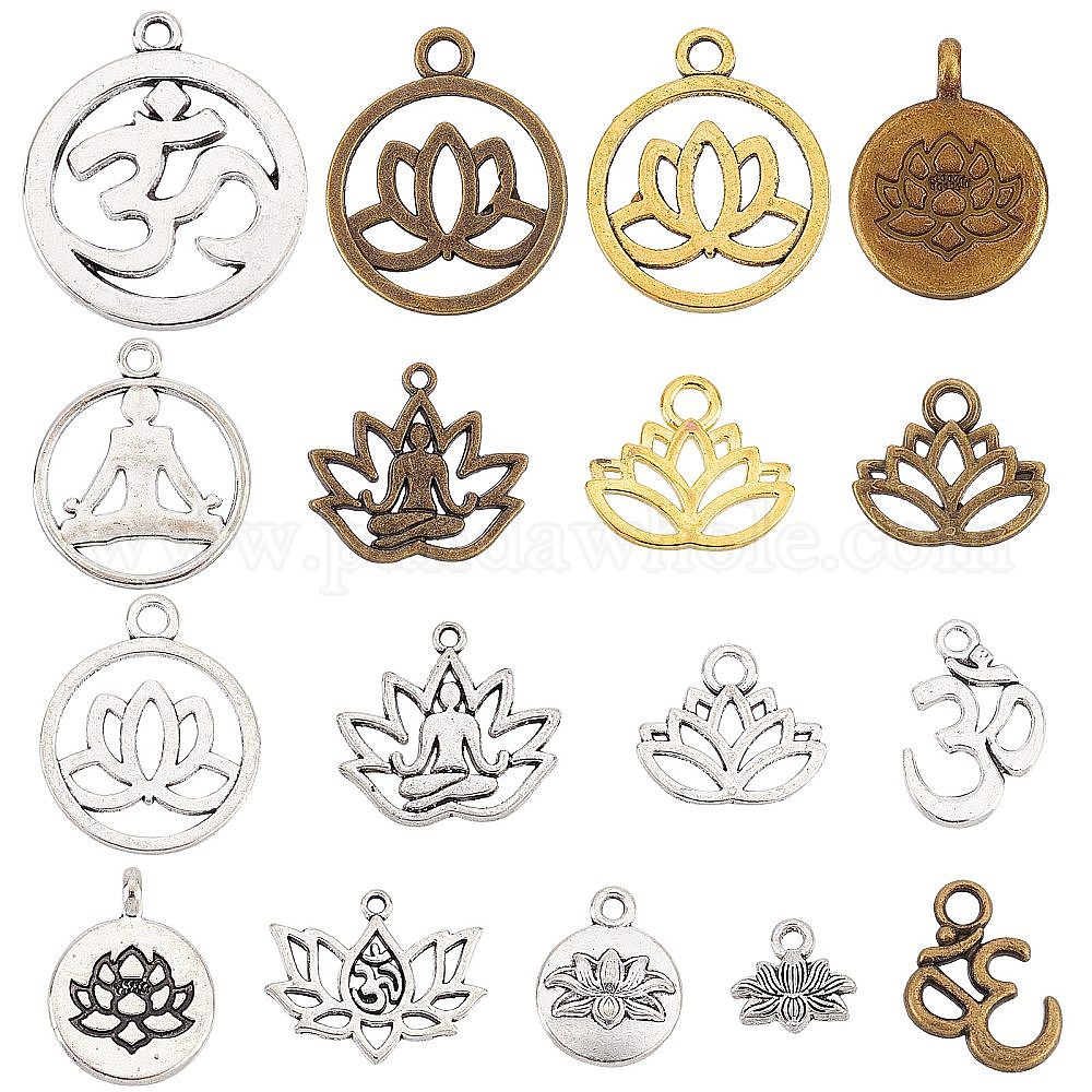 68 шт 17 стиль подвески из сплава в тибетском стиле, йога, без свинца и без кадмия, лотос
