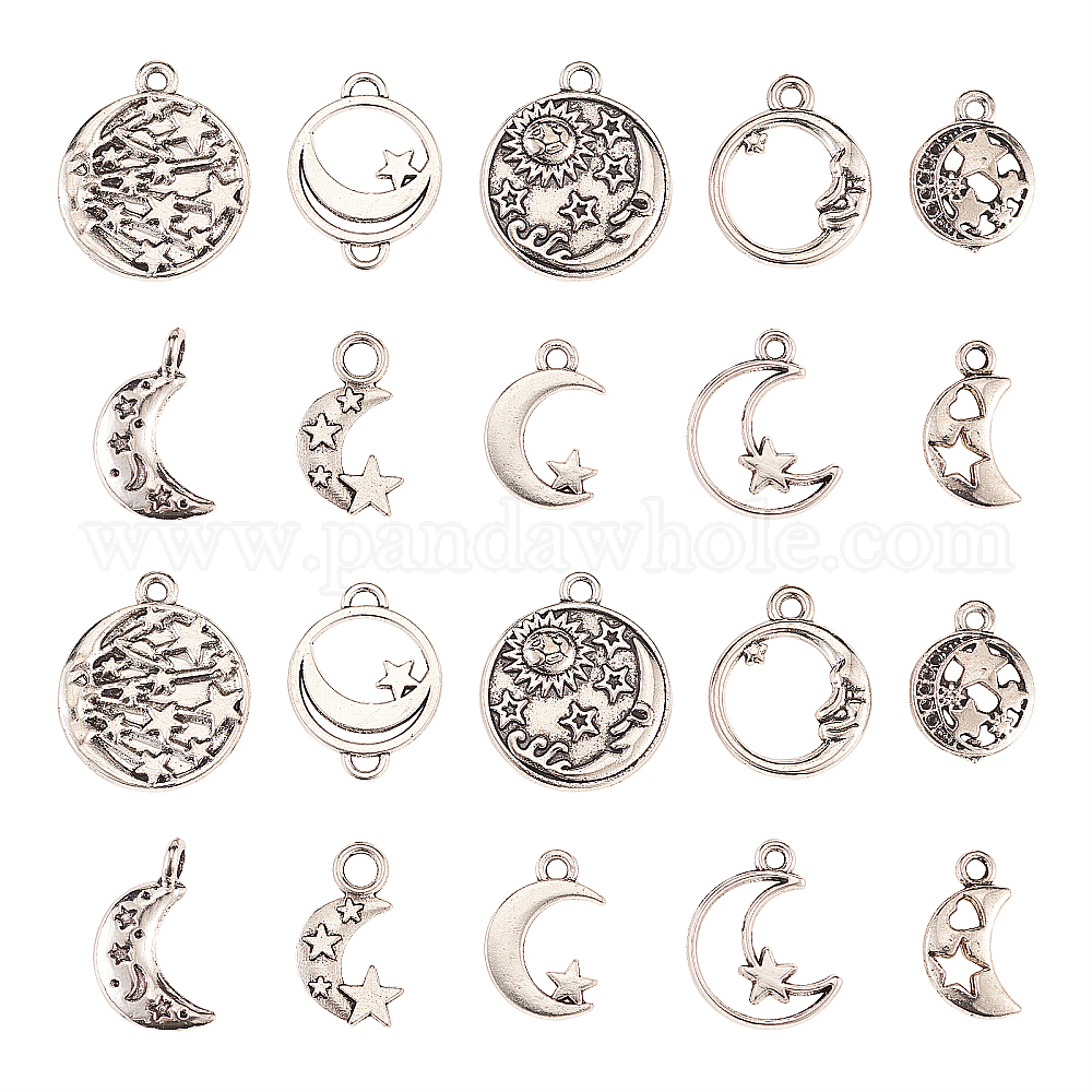 100 шт 10 стили подвески из сплава в тибетском стиле, Луна и звезды, без кадмия и без свинца