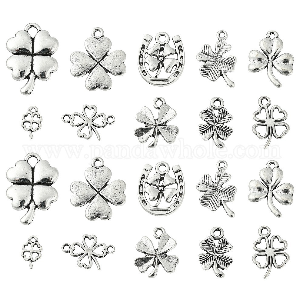 100 шт 10 стили подвески из сплава в тибетском стиле, без кадмия и без свинца, клевер