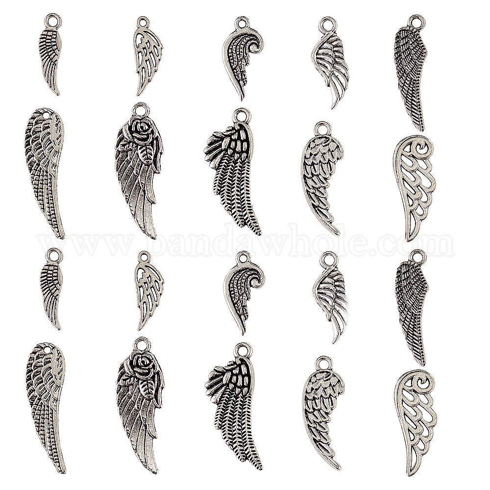 100 шт 10 стили подвески из сплава в тибетском стиле, крыло, без кадмия и без свинца