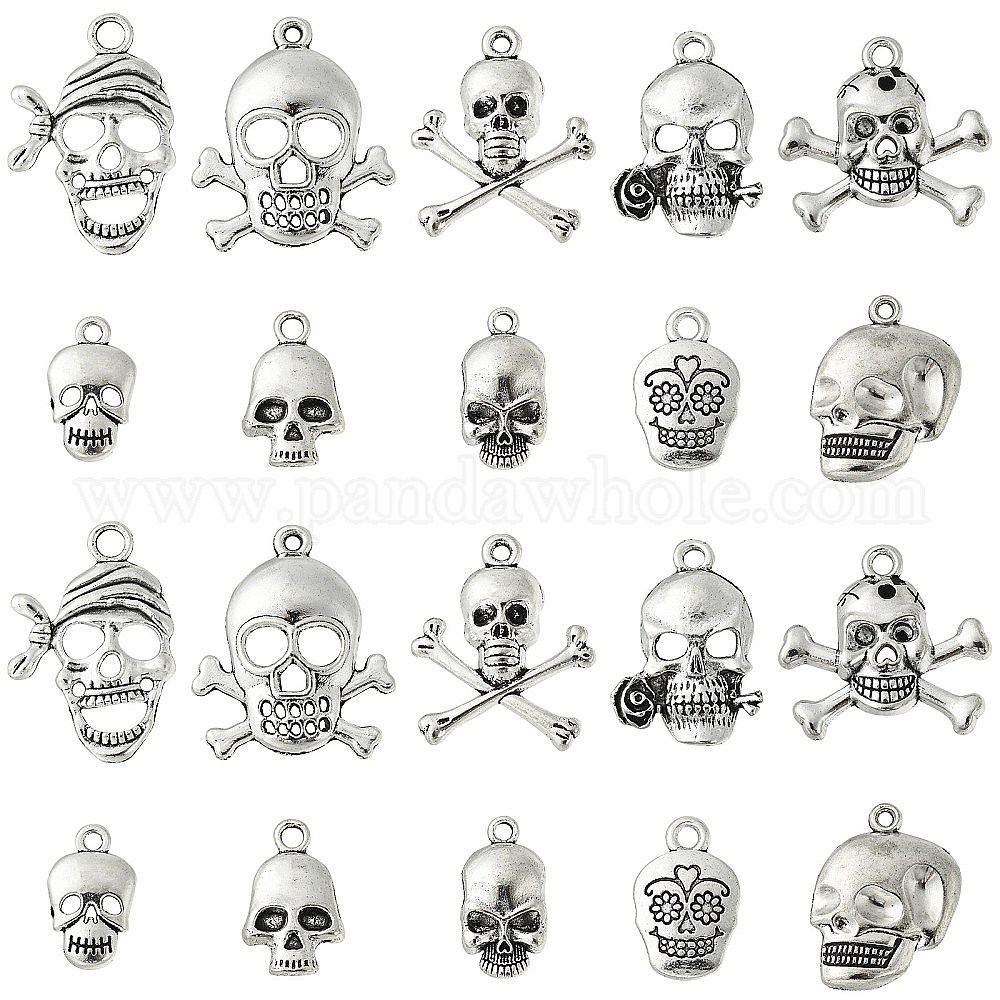 100 шт 10 стили подвески из сплава в тибетском стиле, без кадмия и без свинца, череп